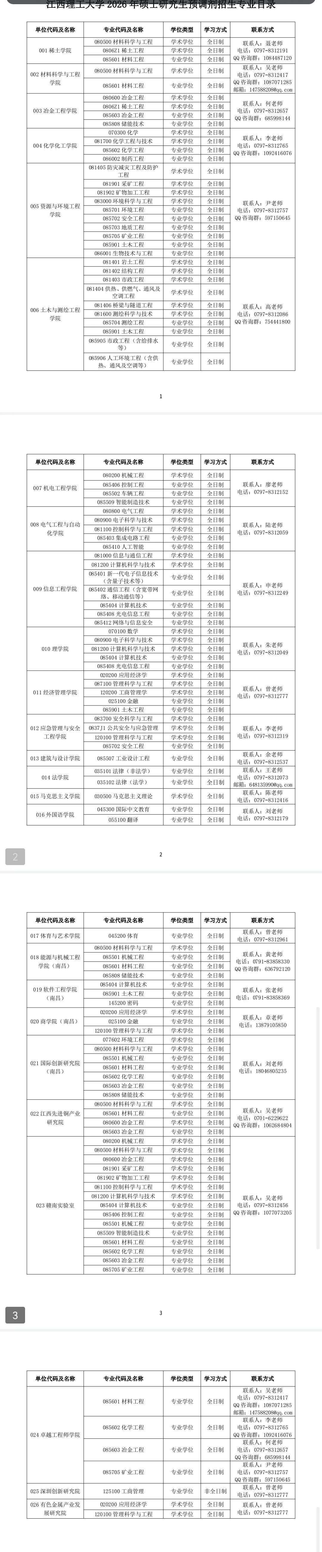 2.各专业招生信息、学费与学制等政策可查阅学校2026年硕士研究生招生简章,网址为https://yz.jxust.edu.cn/info/2733/2664.htm。